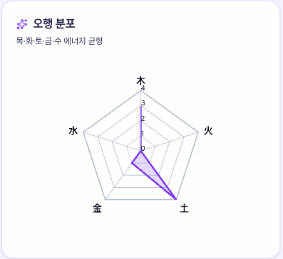연·월·일·시주와 목·화·토·금·수 에너지를 레이더 차트로 한눈에.