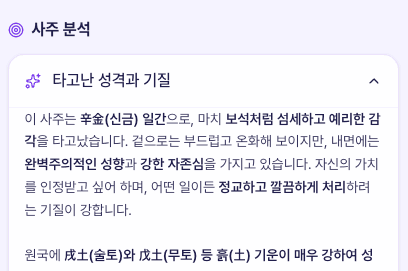 성격 해석부터 재물운, 연애·결혼운, 건강운까지. 스크롤만 하면 읽기 편하게.