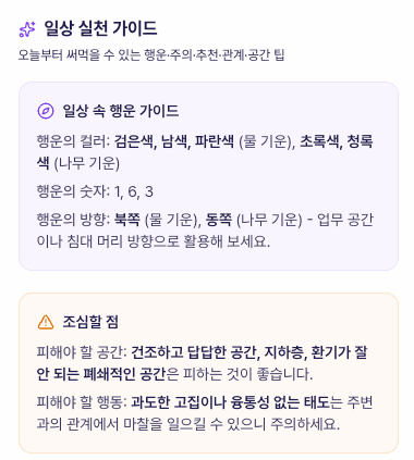 행운 가이드, 조심할 점, 기운 채우는 법, 관계·공간 꾸미기까지.